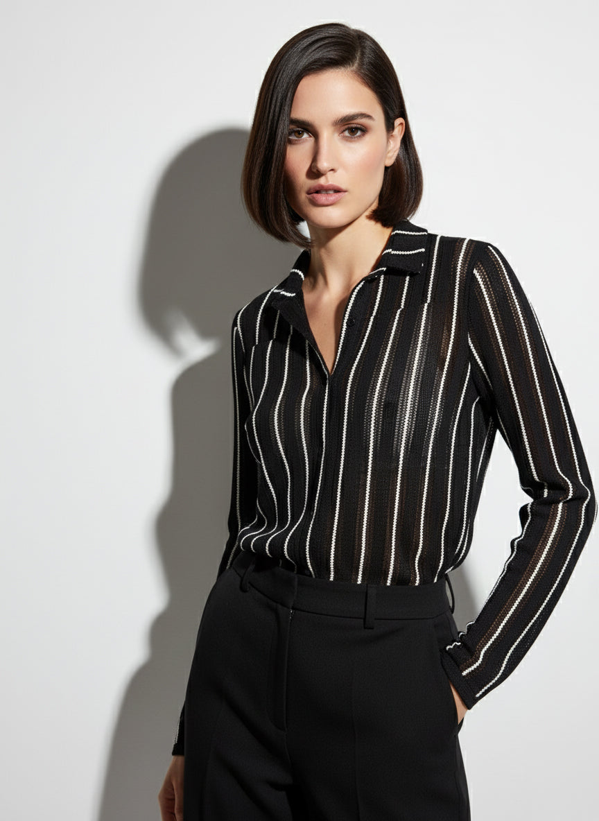 Camisa de hilo con rayas, estilo clásico con un toque moderno.
