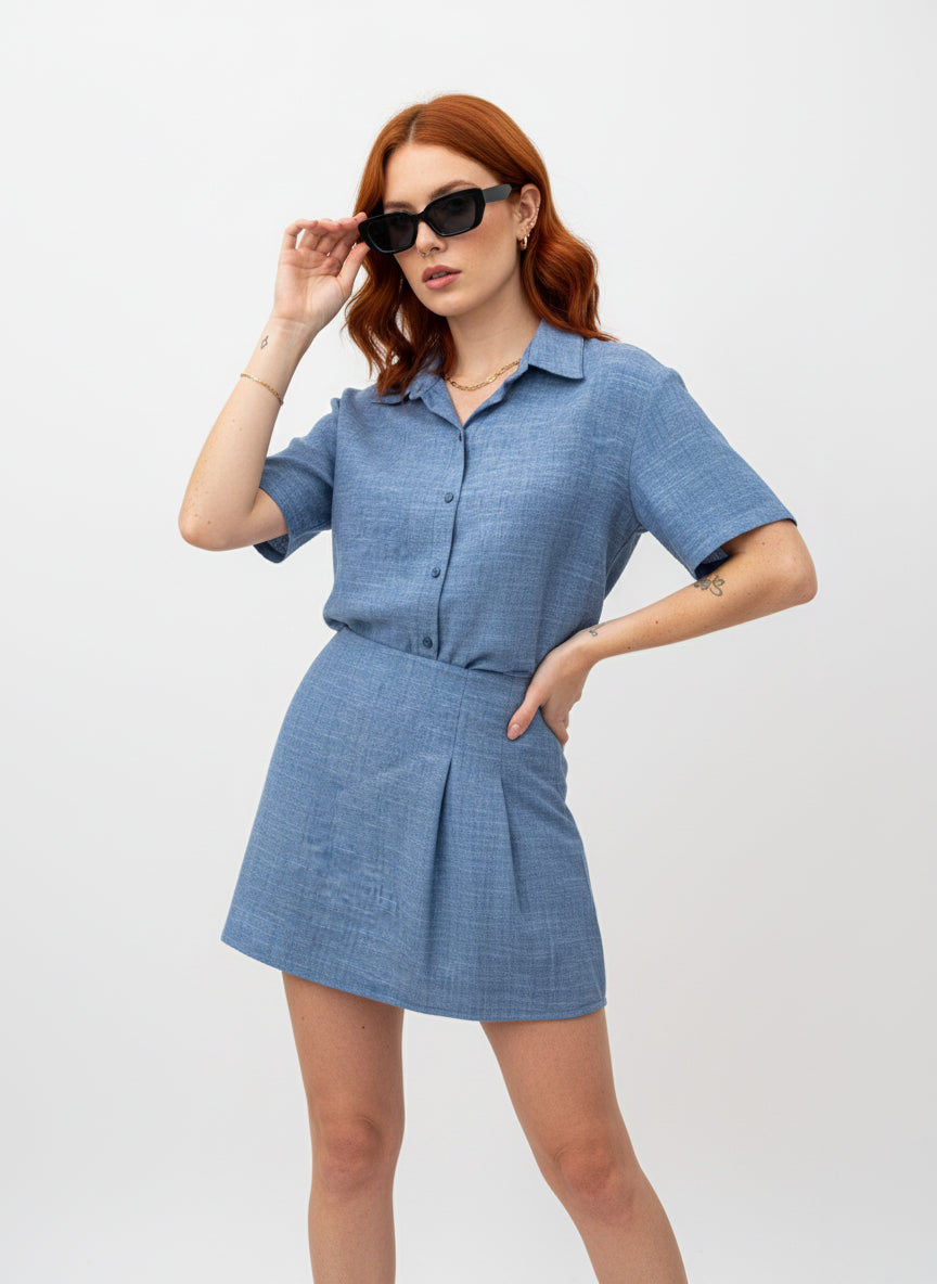 Set de lino fresco y versátil, disponible en tonos azul y hueso.